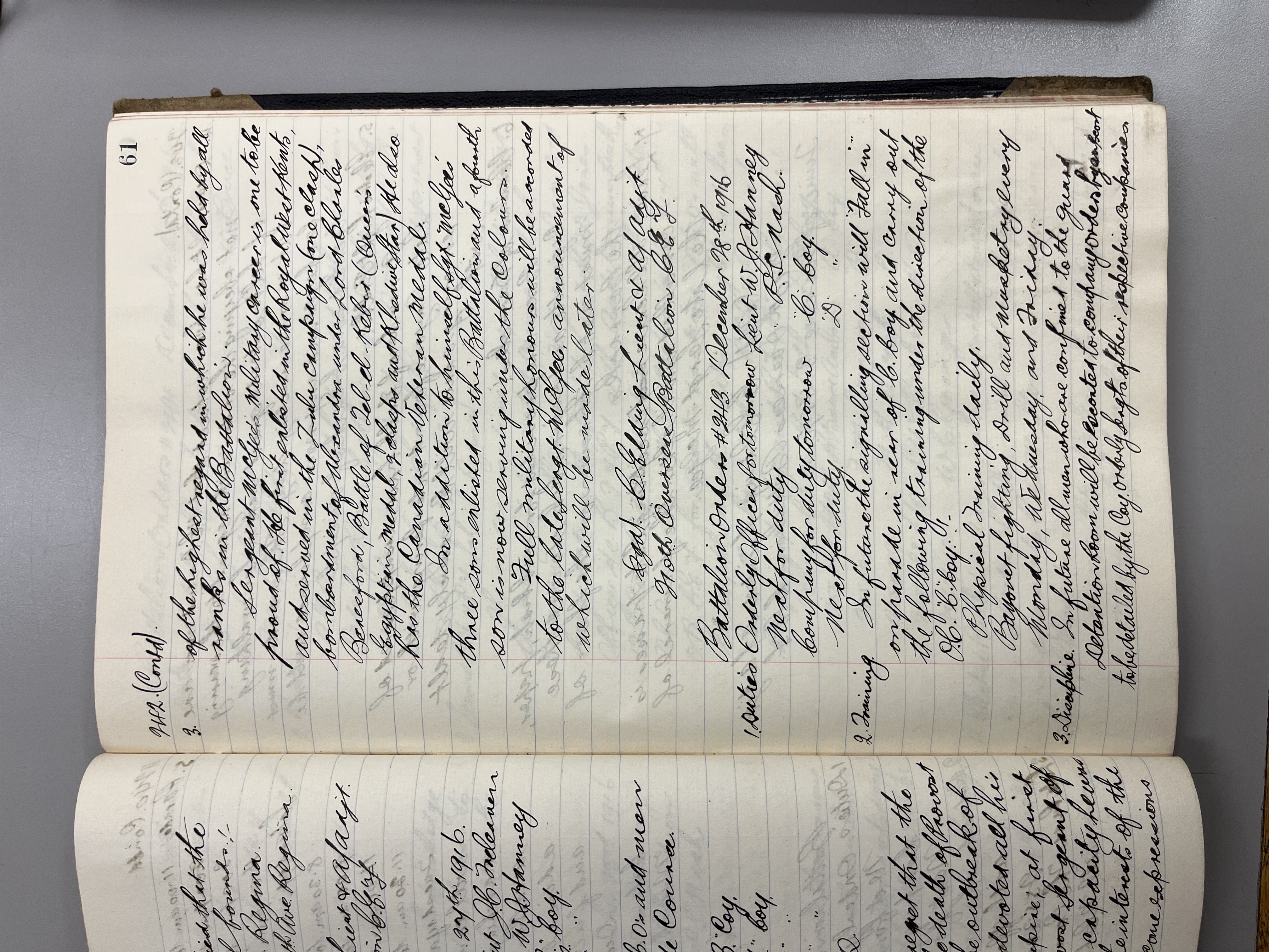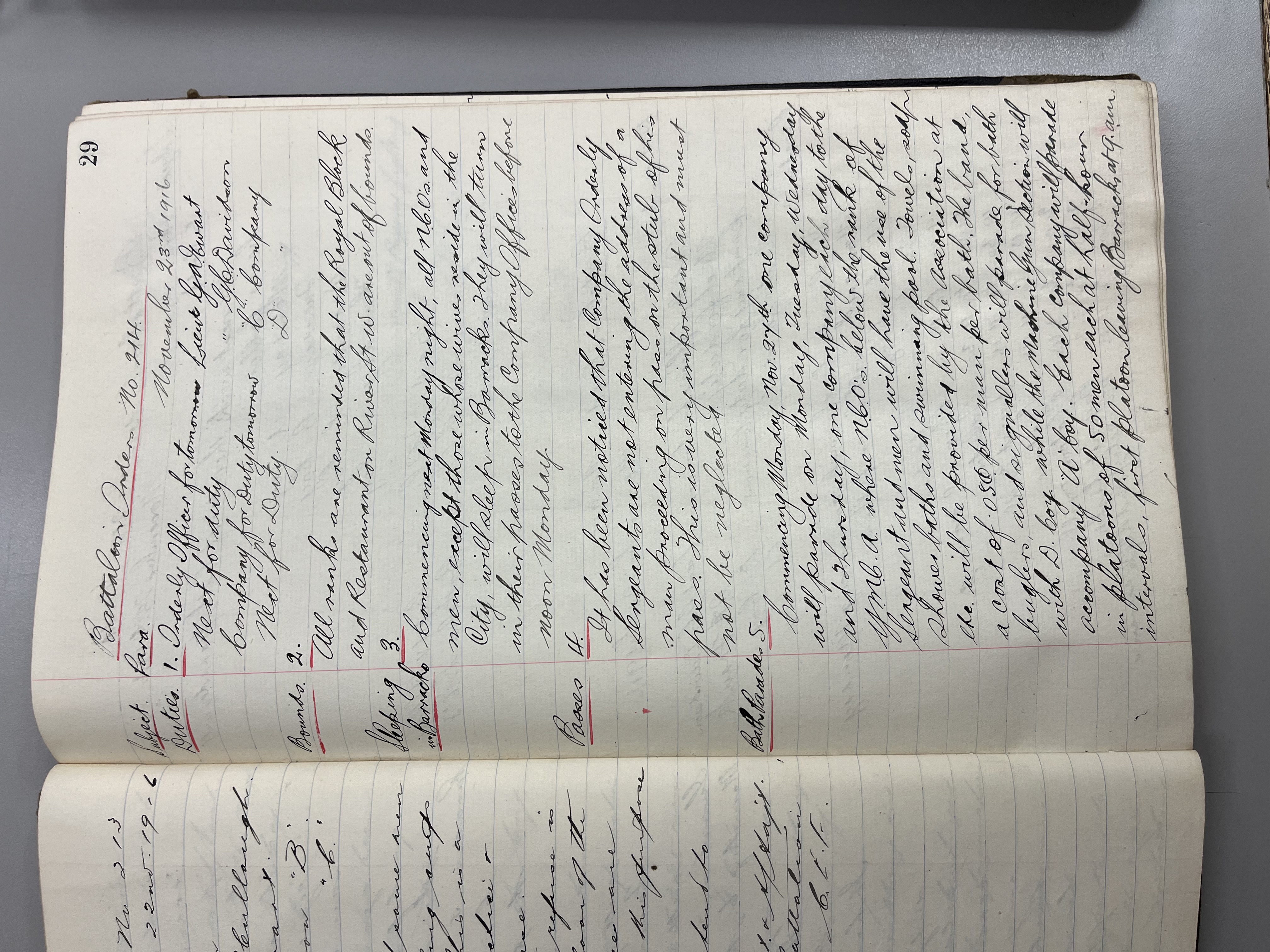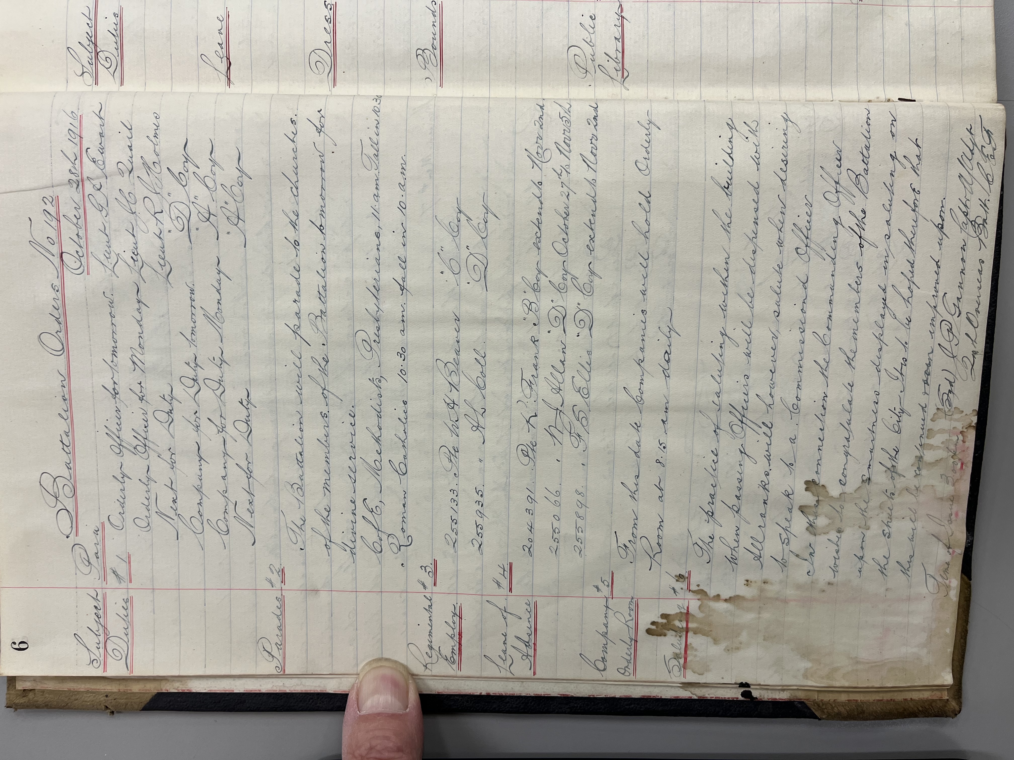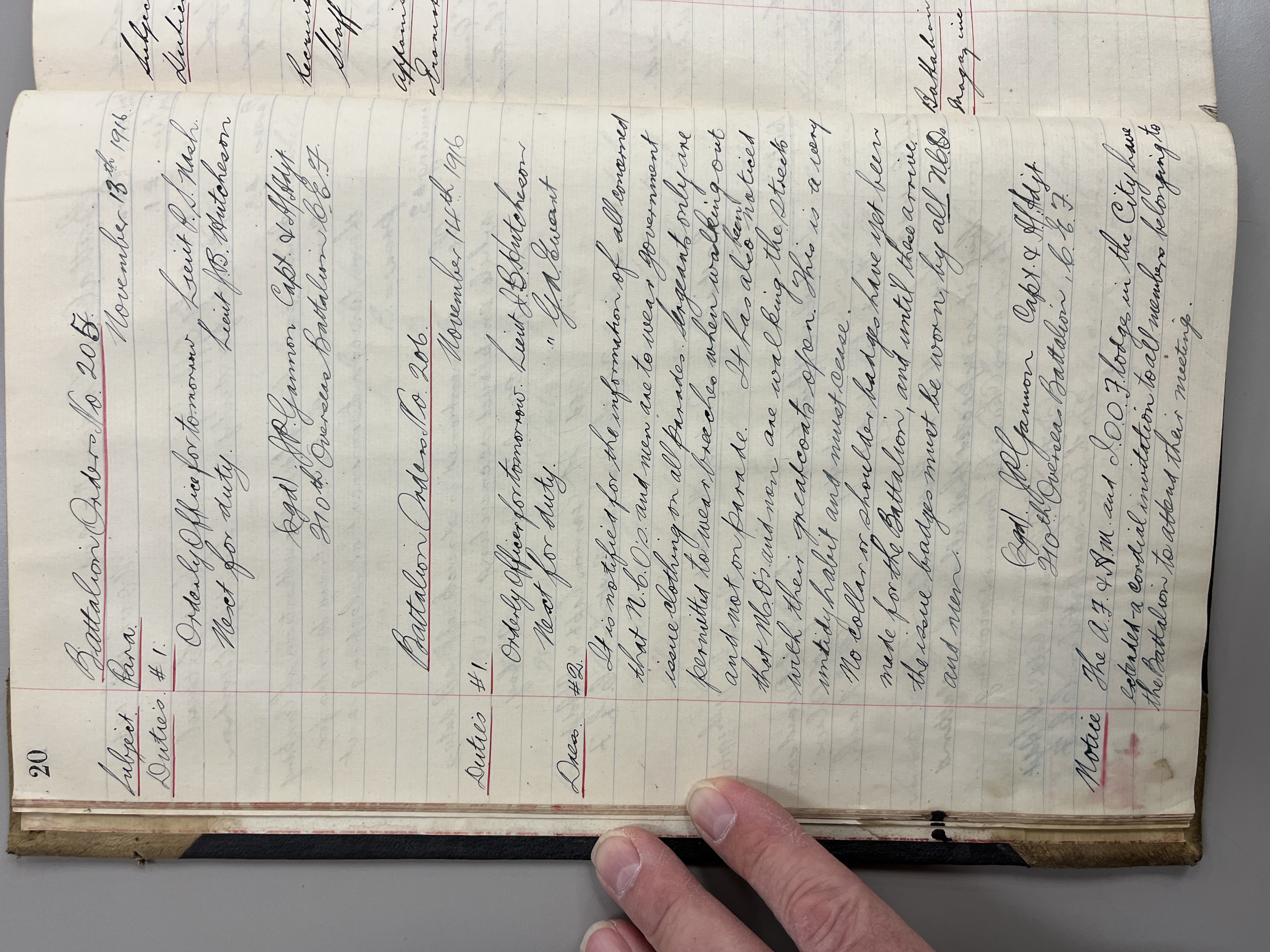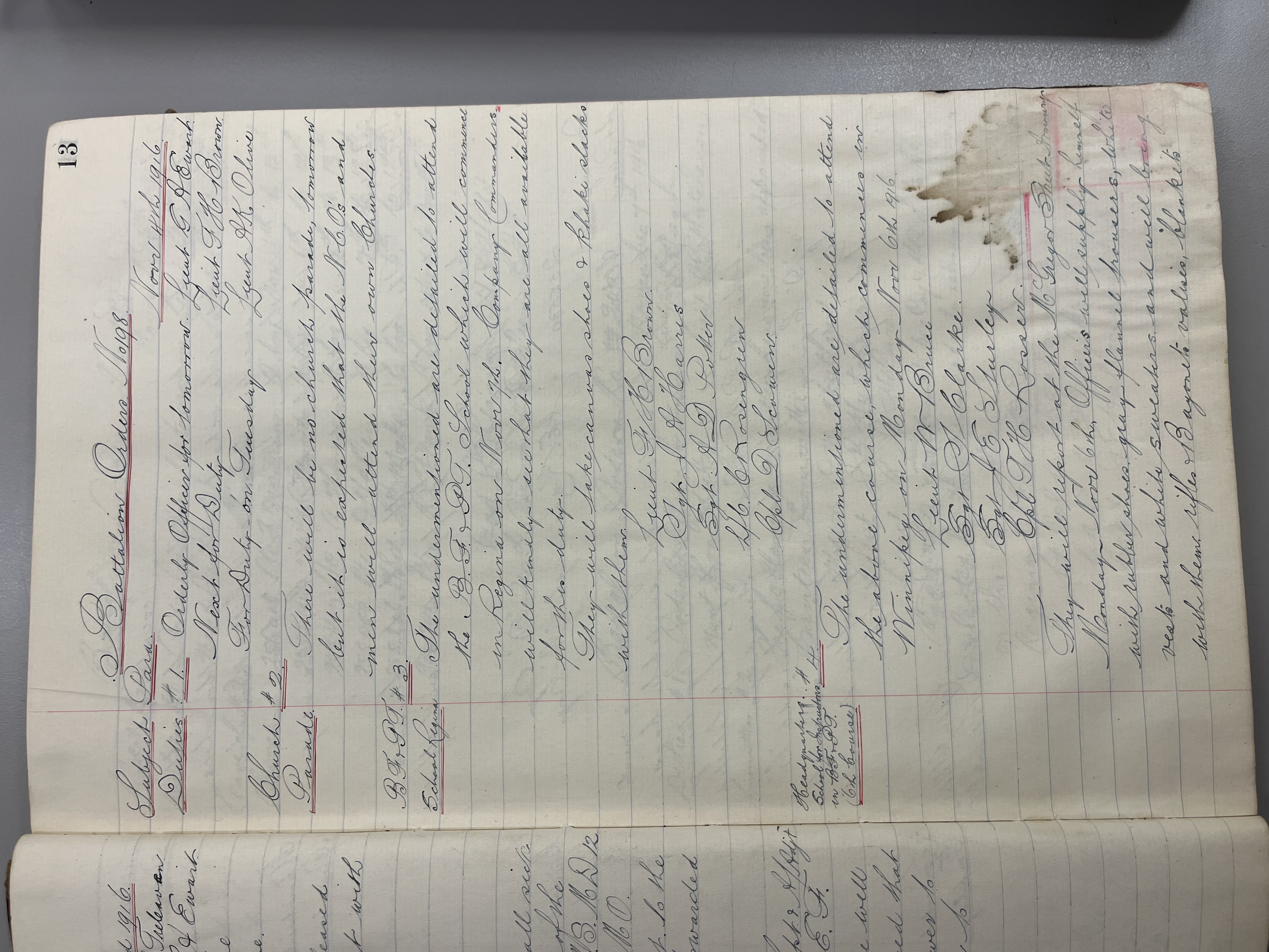 "Battalion Orders. Started October 26th 1916. Moose Jaw, Sask."