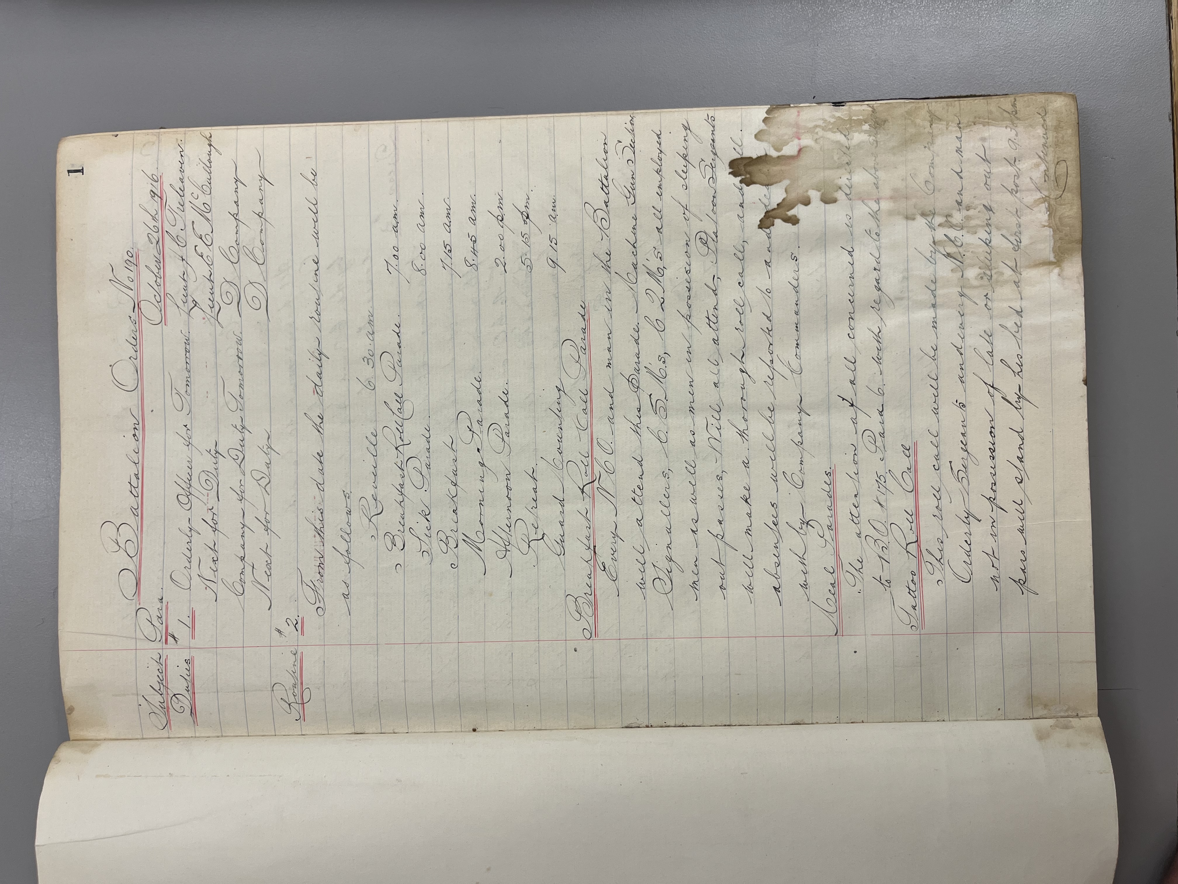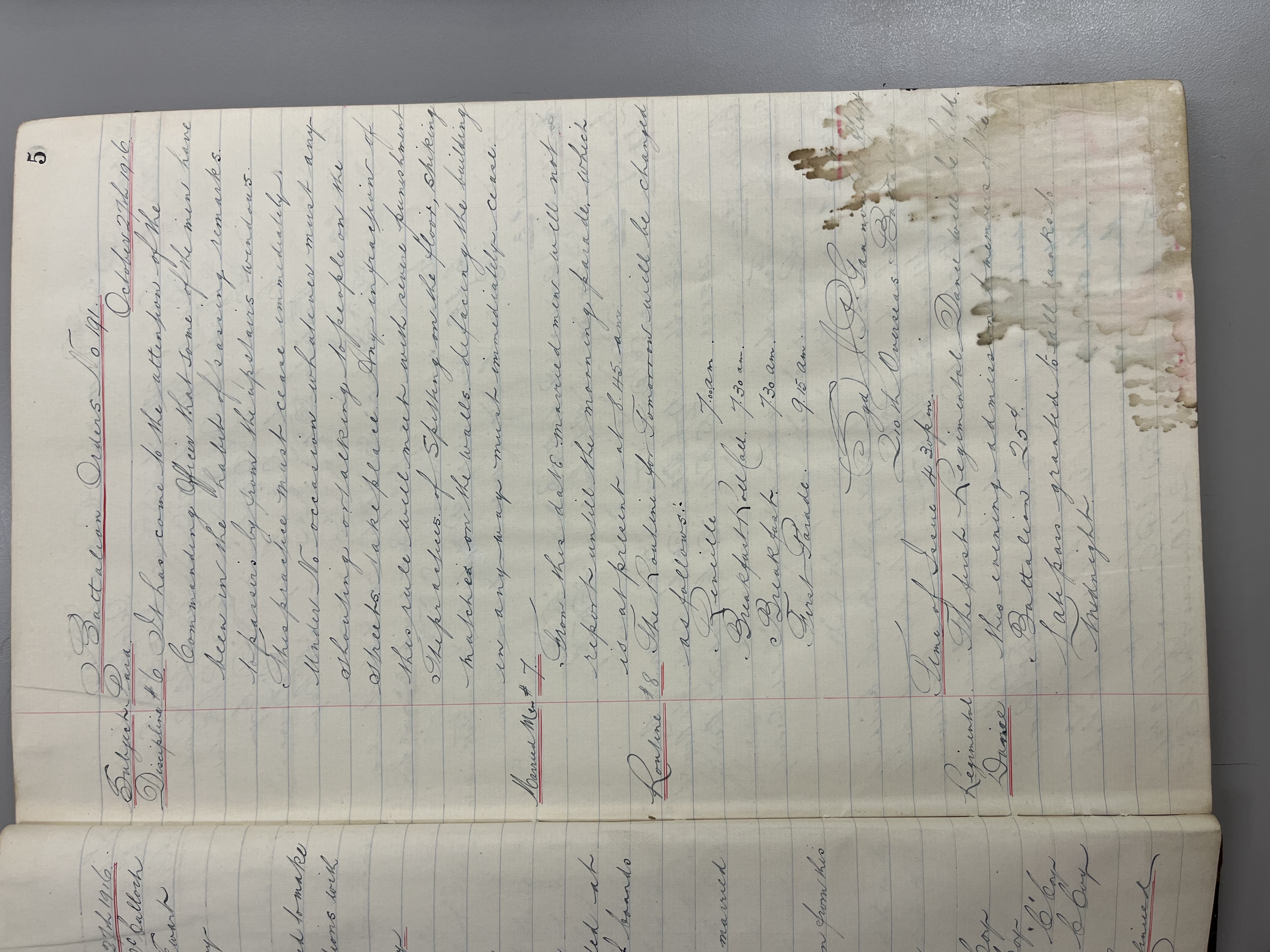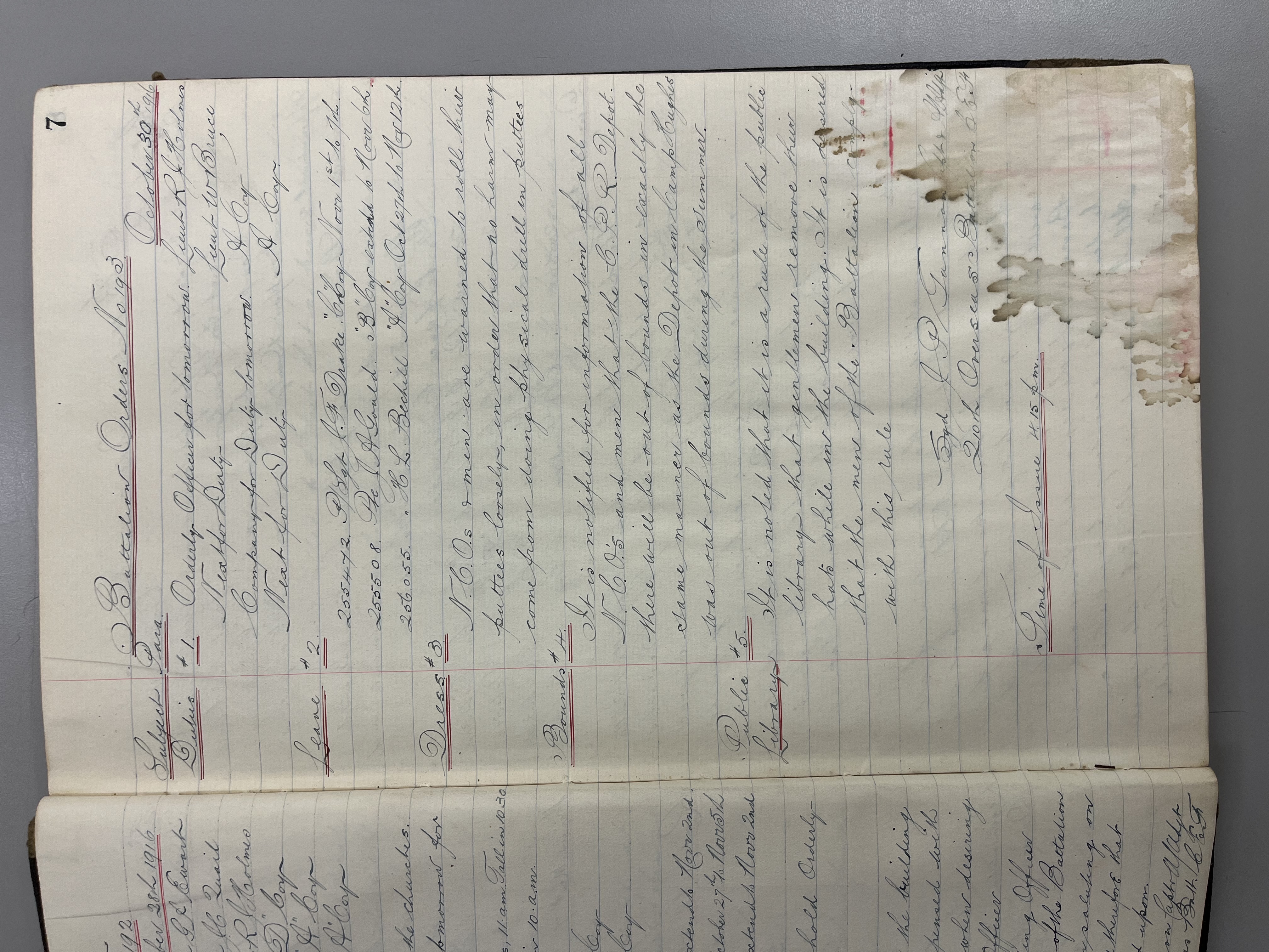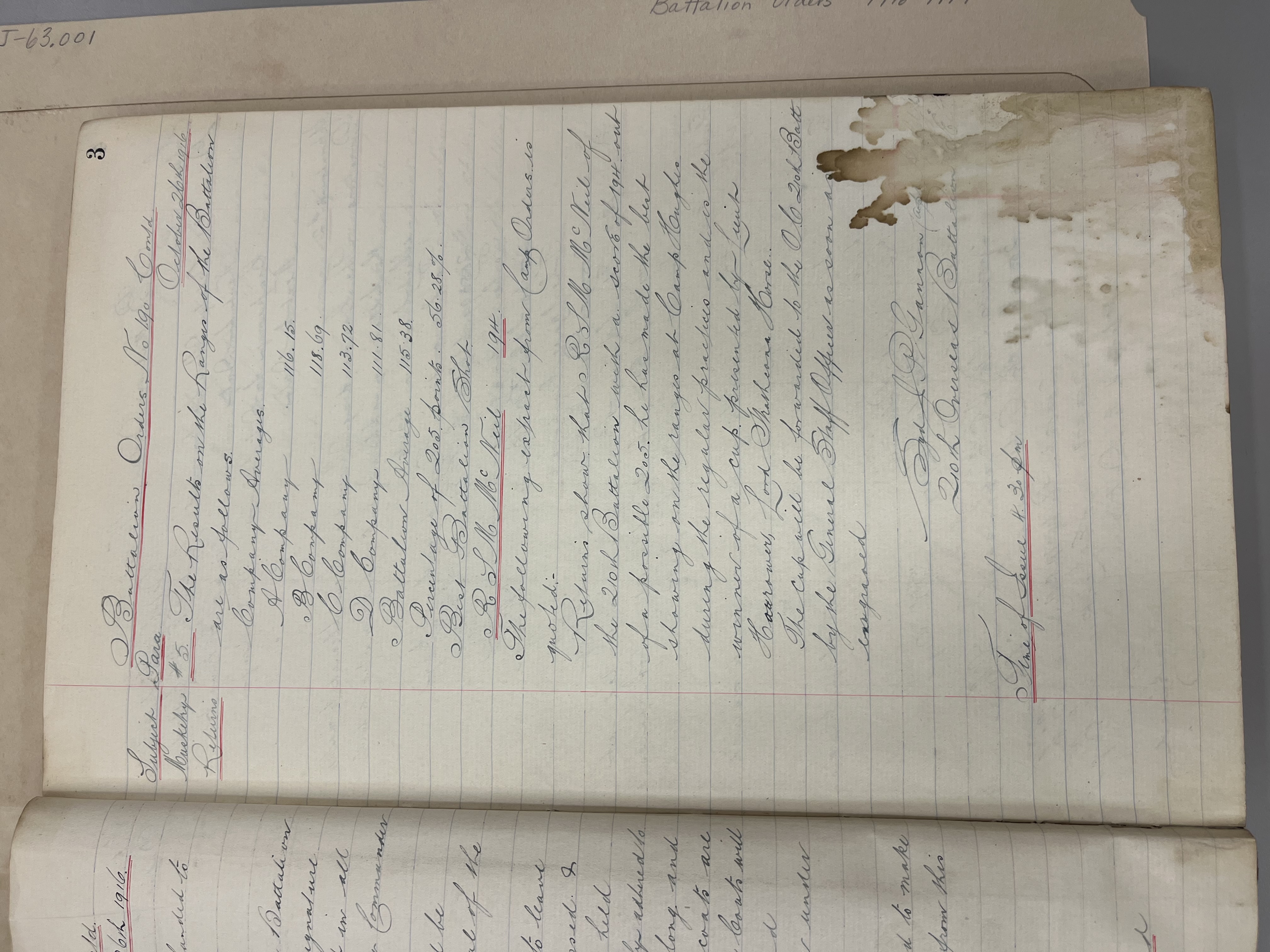 "Battalion Orders. Started October 26th 1916. Moose Jaw, Sask."