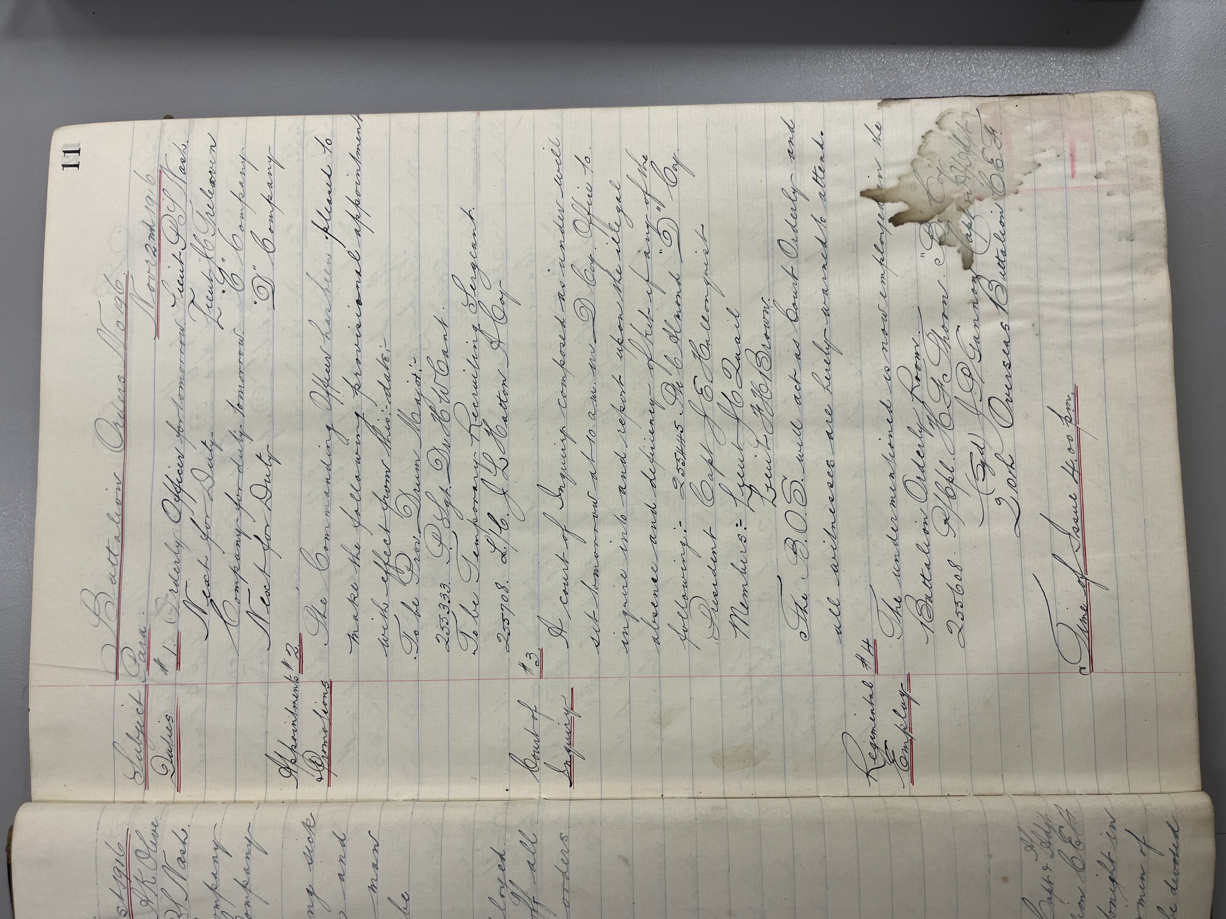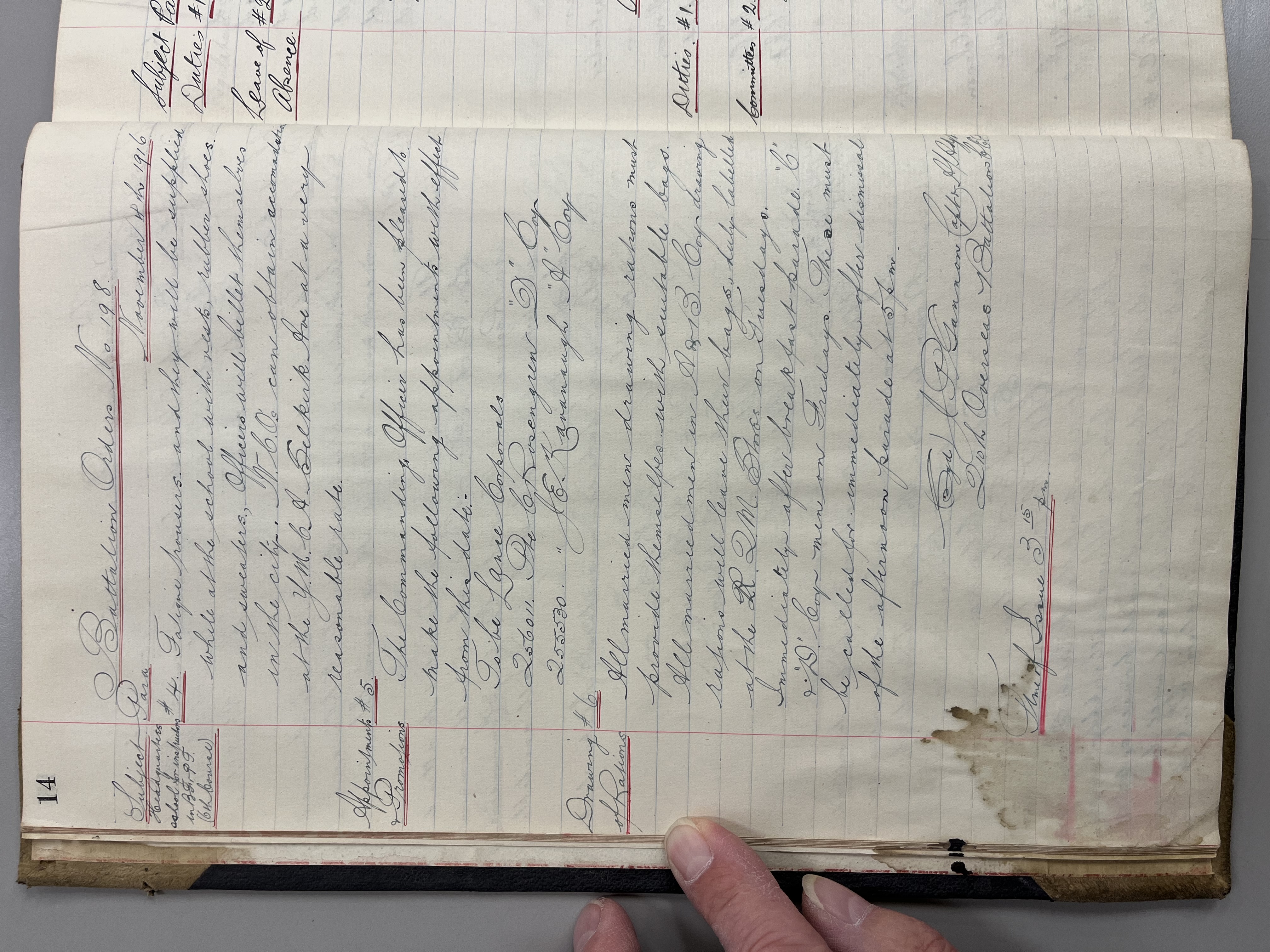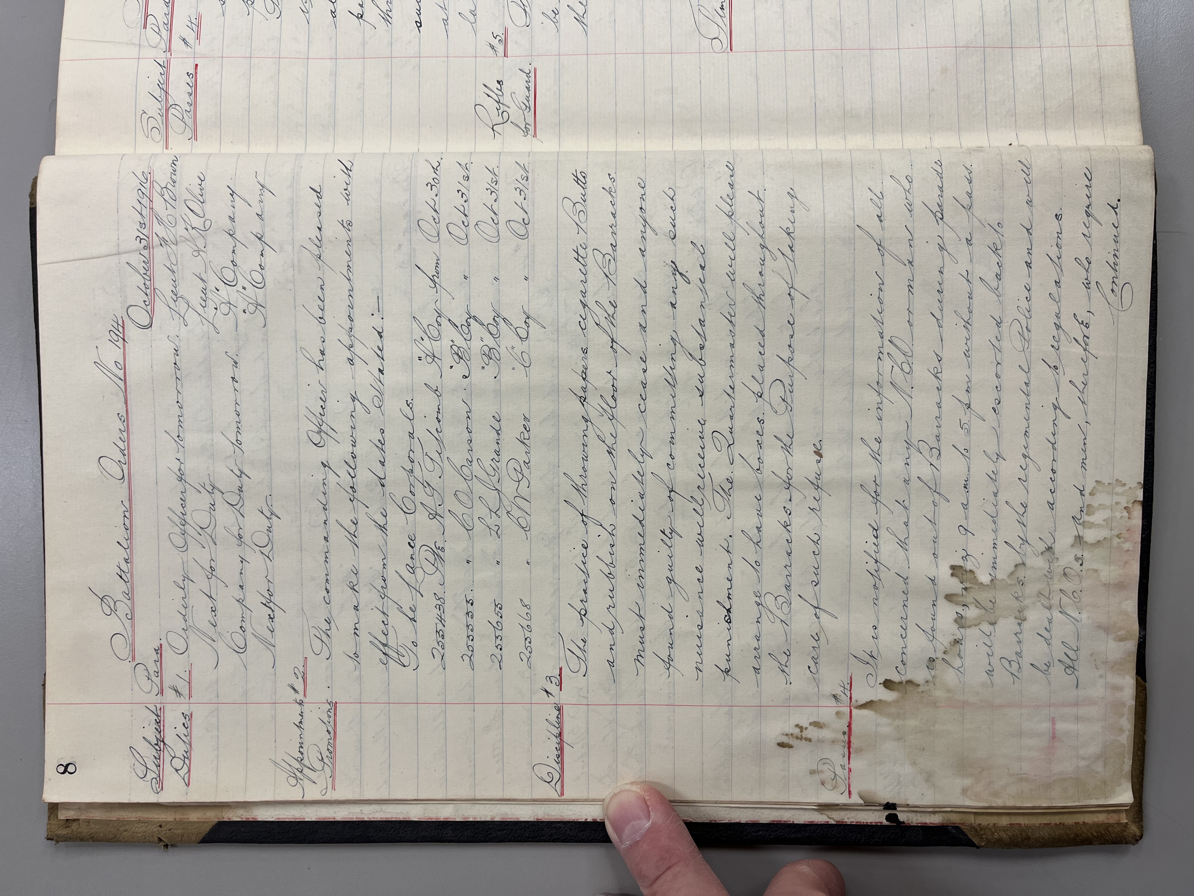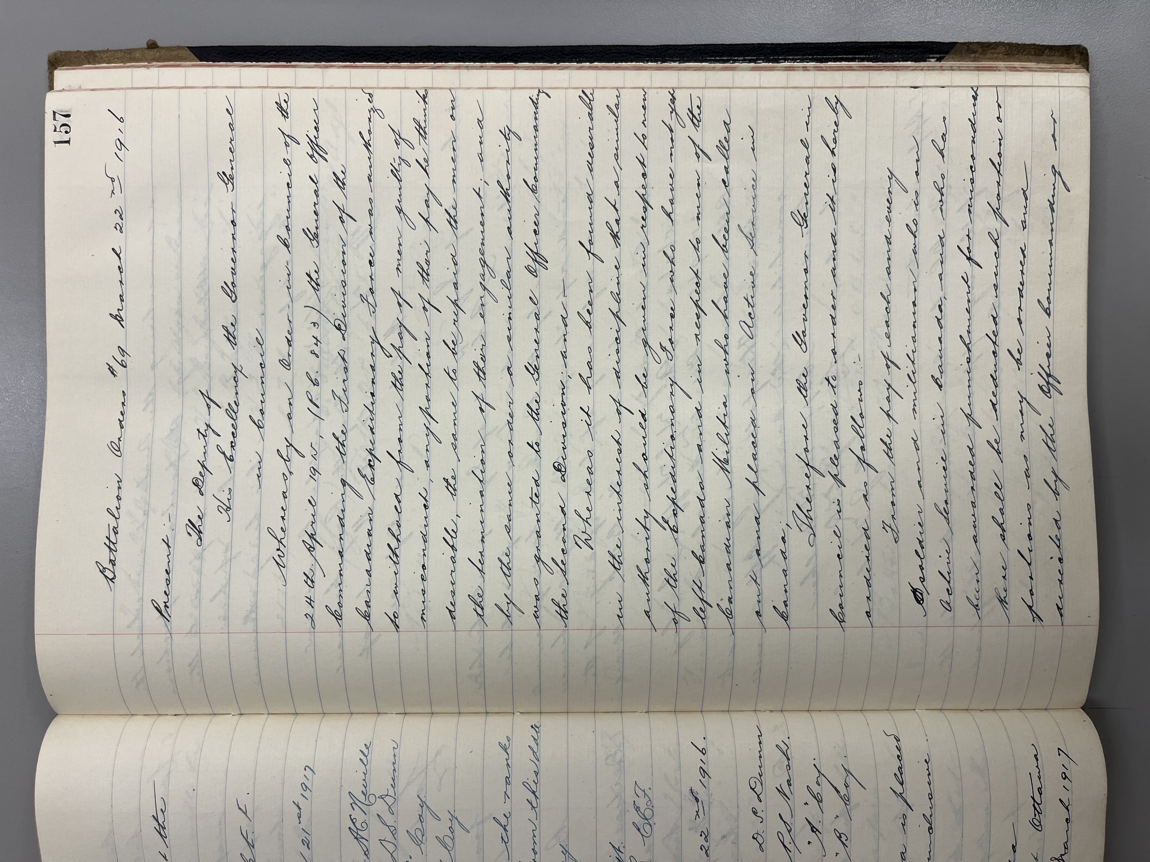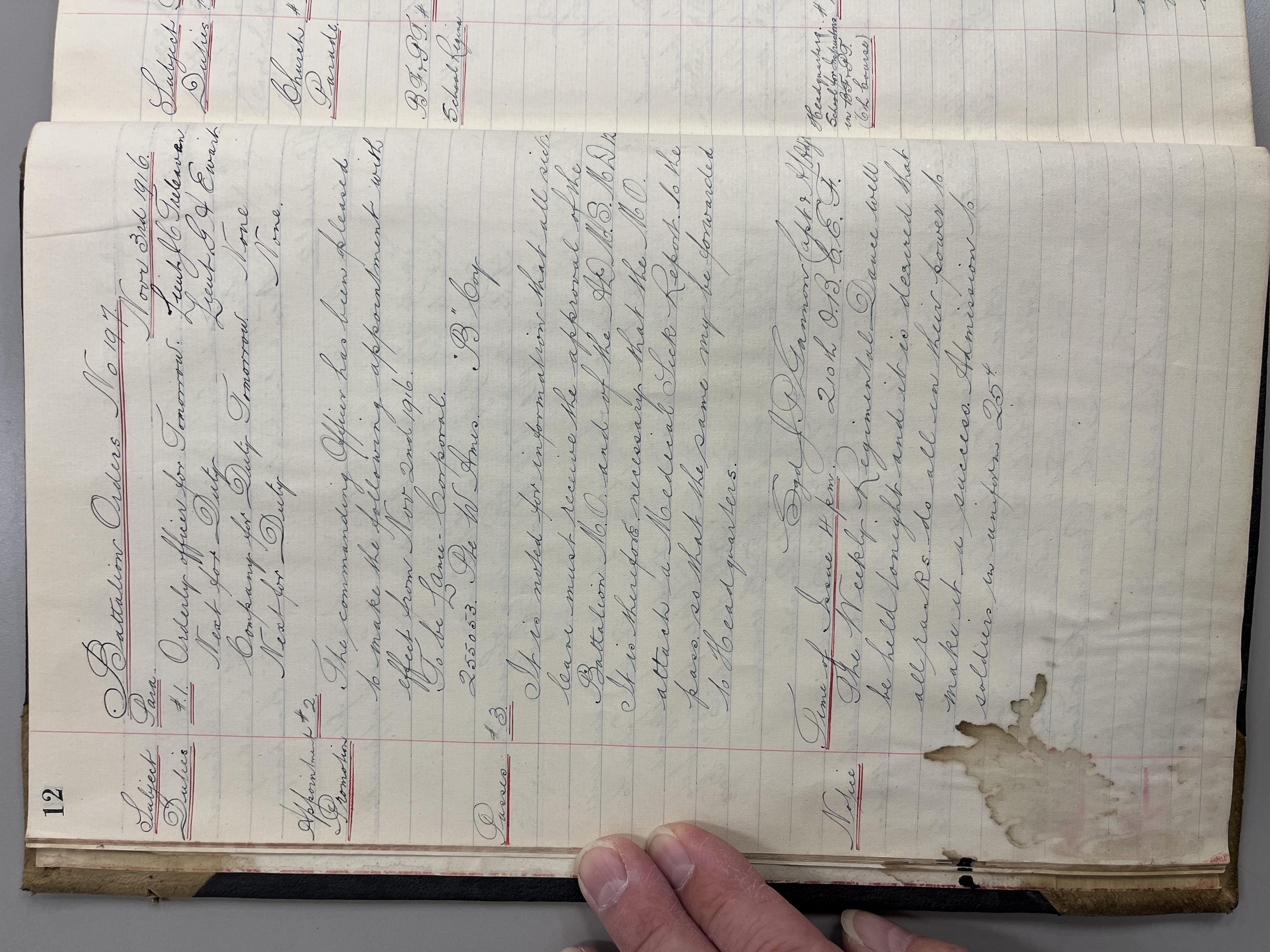 "Battalion Orders. Started October 26th 1916. Moose Jaw, Sask."