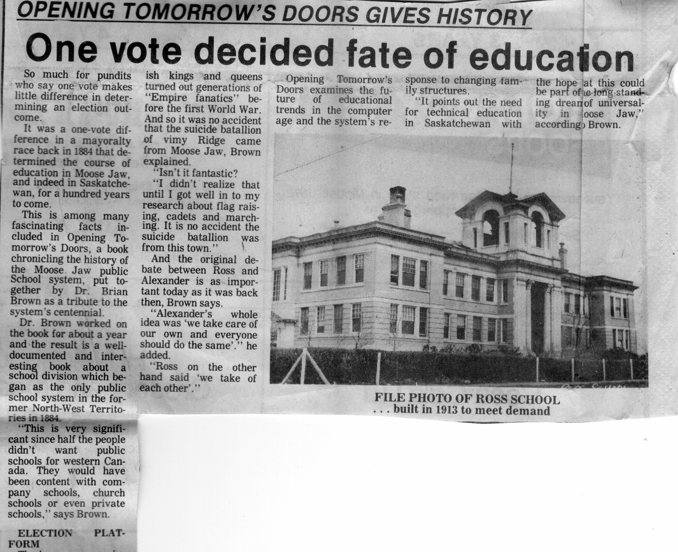 The following photos and other items were donated by Doris Lemieux of Moose Jaw via Gerry Carline. Ross School building is still standing in 2026, and has been fully restored and repurposed.