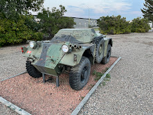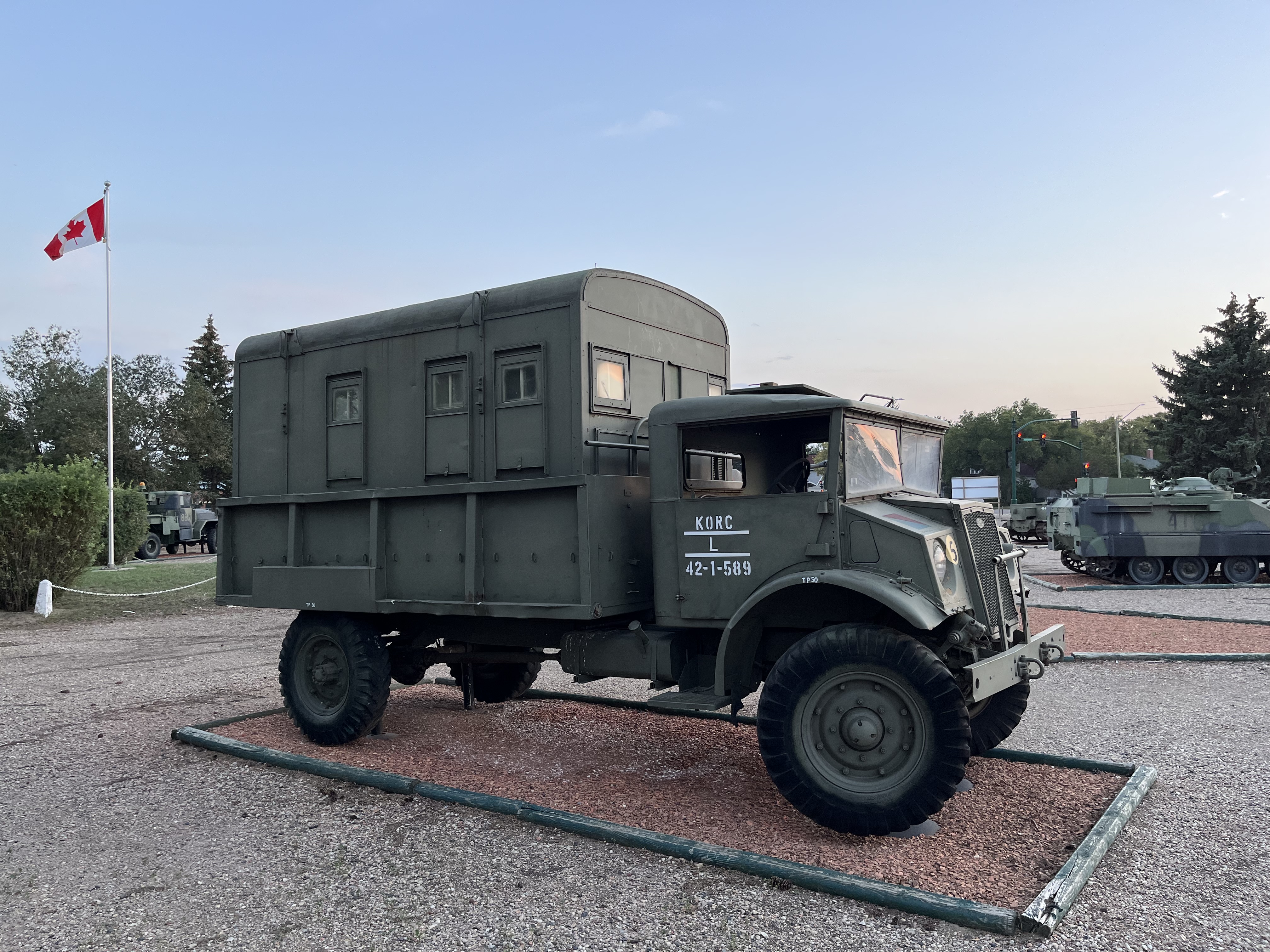Ownership Ferret scout car with smoke grenade dischargers on front fenders, spare tire mounted on the side, large front headlights. Just 124 Ferrets were owned by Canada according to Wikipedia.