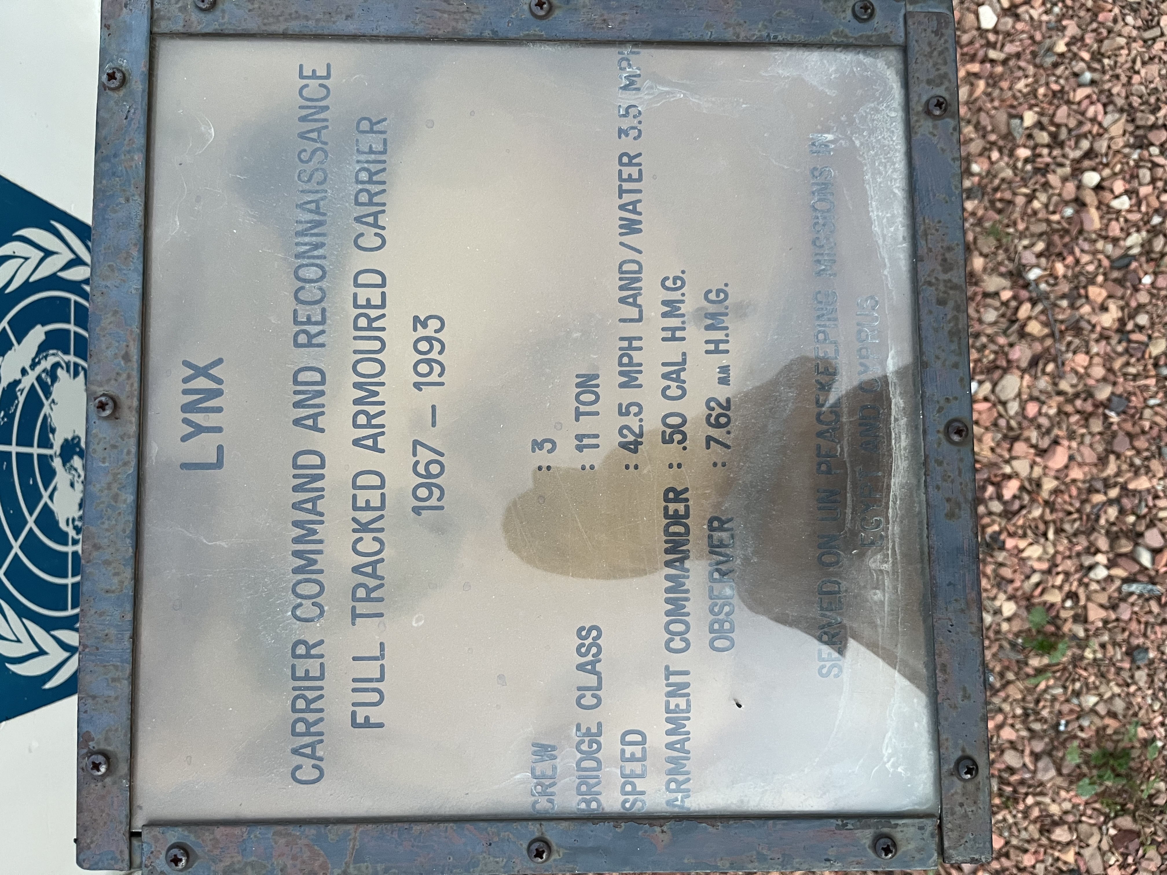 Ownership Lynx. Carrier command and reconnaissance full tracked armoured carrier. 1967-1993. Crew: 3. Bridge class: 11 ton. Speed: 42.5 mph land/water 3.5 mph. Armament commander: .50 cal H.M.G. Observer: 7.62 mm H.M.G. Served on UN peacekeeping missions in Egypt and Cyprus. The Saskatchewan Dragoons had one.