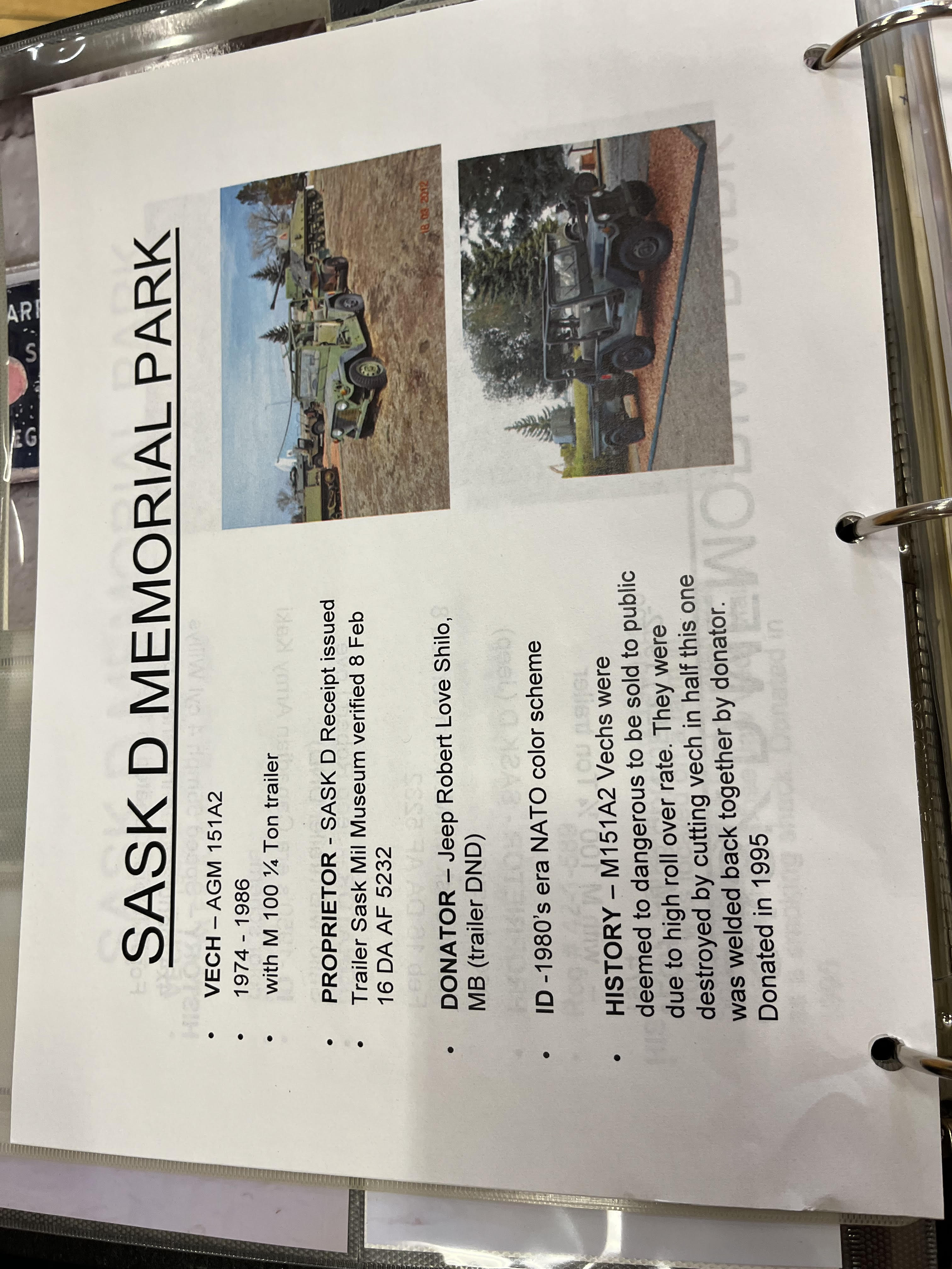 Ownership 74 Pattern Jeep. 1974. Independent suspension made the vehicle easy to roll. The Saskatchewan Dragoons had one. It became the Commanding Officer's vehicle.