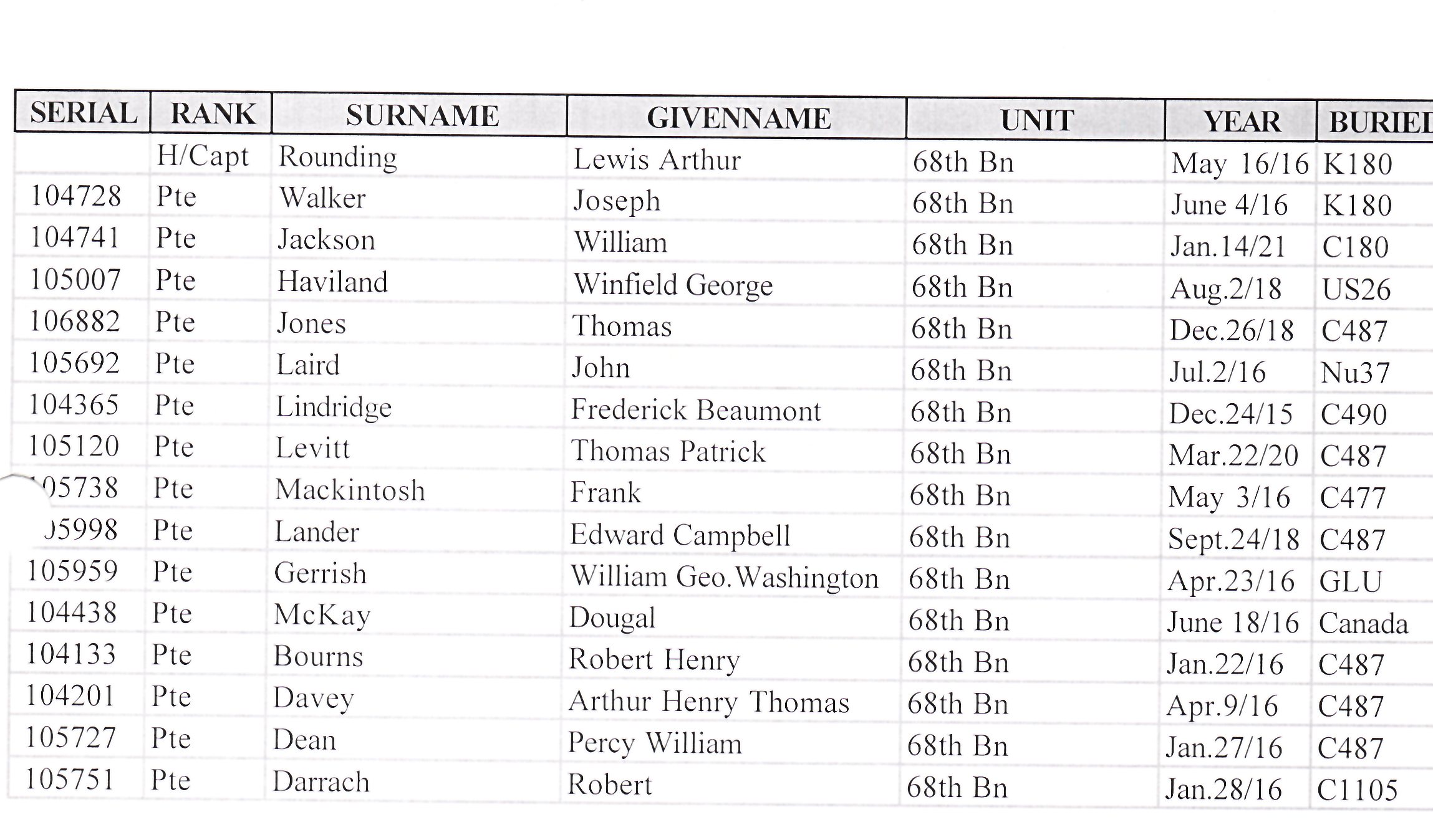 68th Canadian Infantry Battalion* Recruited in Moose, Regina and surrounding area. Nominal Roll at Library and Archives Canada Casualty List