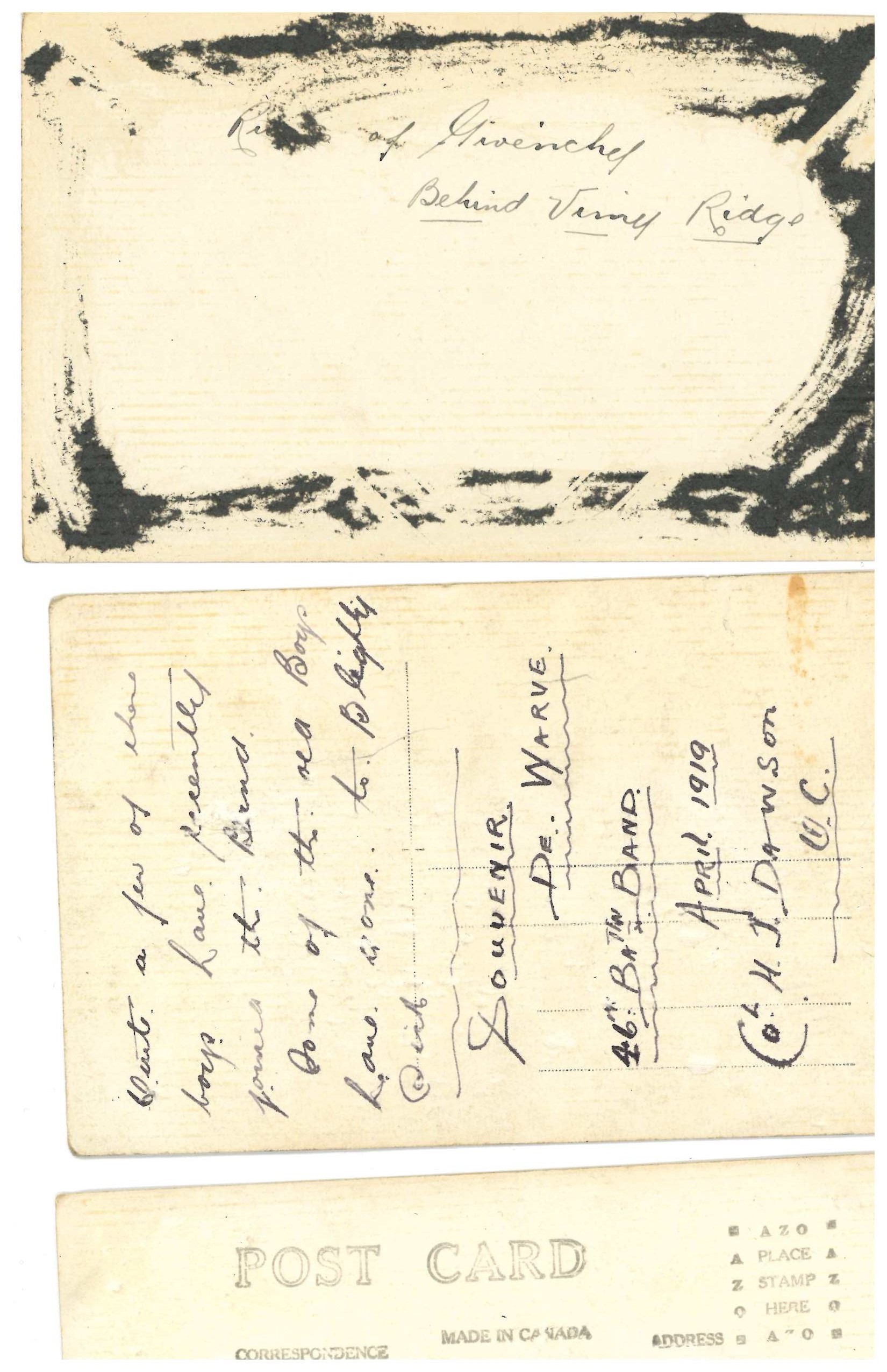 Quite a few of the boys have presently joined the Band. Some of the ? Boys have gone to Blighty." Souvenir de Warve. Descamps, Havre. Col. H.J. Dawson W.C.